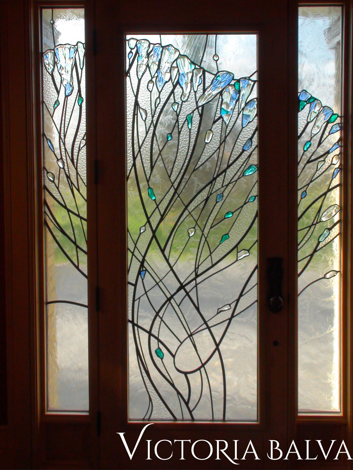 Minimalistic contemporary stained, fused leaded glass doorlights from artisticlinestudio.com